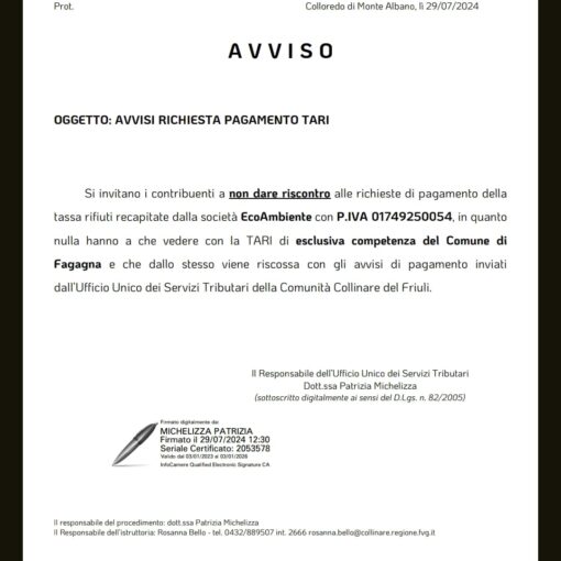 L’Ufficio Unico dei Servizi Tributari della Comunità Collinare del Friuli ha emesso un avviso urgente […]