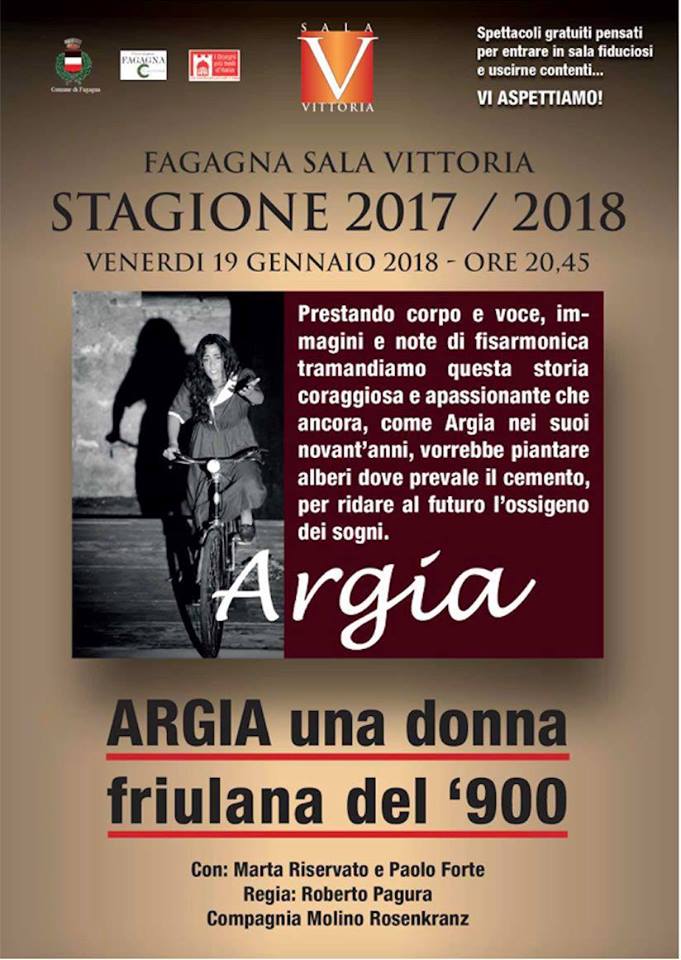 Prestando corpo e voce immagini e note di fisarmonica tramandiamo questa storia coraggiosa e appassionate che ancora, come Argia dai suoi novant’anni, vorrebbe piantare alberi dove prevale il cemento, per ridare al futuro l’ossigeno dei sogni.