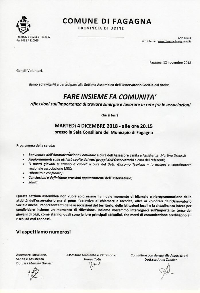 Presso la Sala Consiliare del Municipio di Fagagna.
