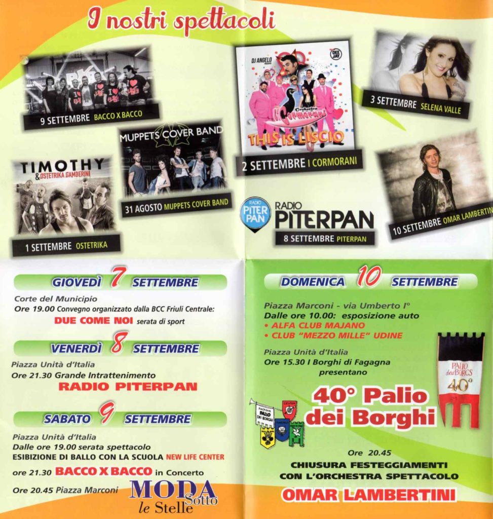 – ore 10.00: esposizione auto “Alfa Club Majano” e “Club Mezzo Mille Udine” su Via Umberto I