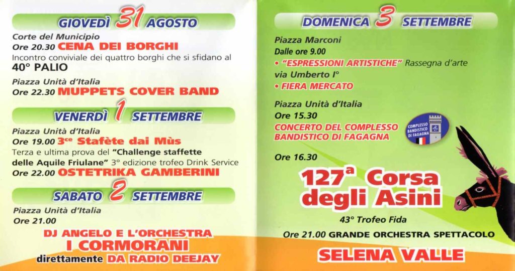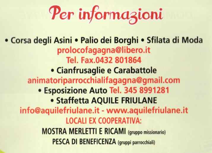 – ore 15.30: concerto del Complesso Bandistico di Fagagna
