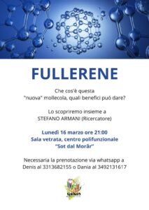 Lunedì 16 marzo 2026 alle ore 21:00, la Sala vetrata del Centro Polifunzionale “Sot dal Morâr” a Madrisio di Fagagna ospiterà un incontro affascinante e attuale: “Fullerene” – Che cos’è questa “nuova” molecola e quali benefici può dare?