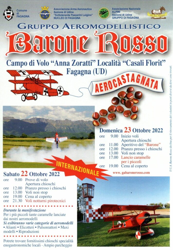 Il Gruppo Aeromodellistico “Barone Rosso” Vi invita sabato 22 e domenica 23 ottobre 2022, al tradizionale incontro internazionale di volo aeromodellistico.