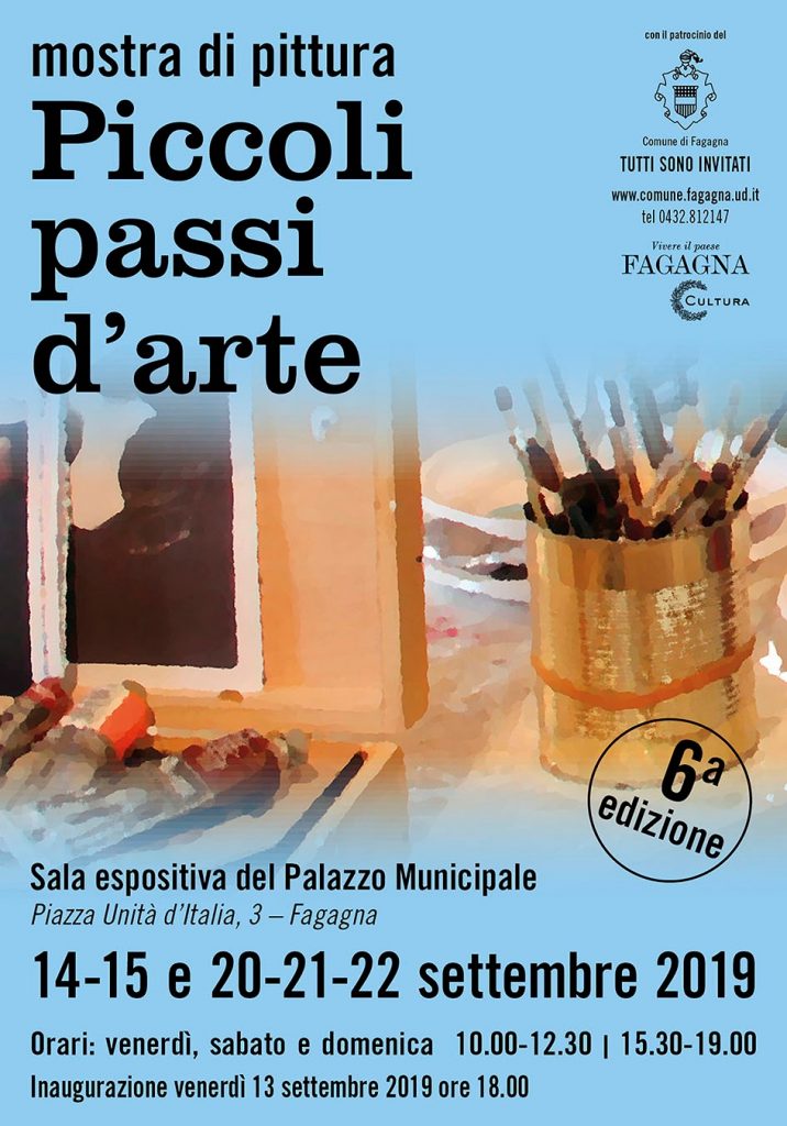 Piccoli passi d’arte Mostra di pittura 20 – 21 – 22 Settembre 2019, sala espositiva del Palazzo municipale piazza Unità d’Italia, 3 Fagagna
